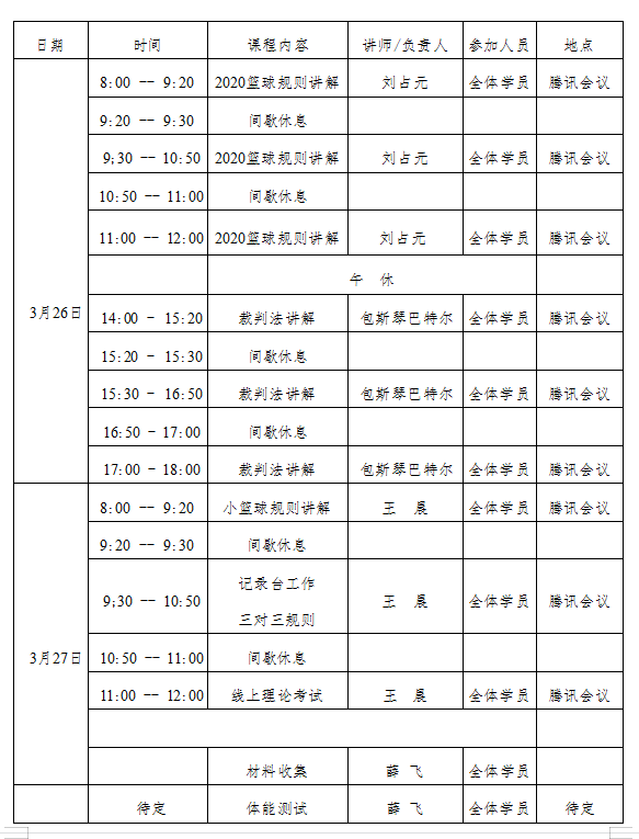 1.理论考试:2020年篮球规则(三对三、小篮球规则)、裁判法。