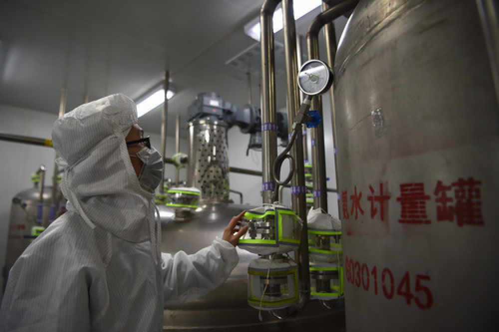 3月12日,在托克托工业园区内的内蒙古常盛制药有限公司,工人在生产车间作业。