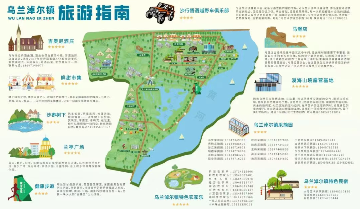 小罗果蔬园:13847349346秀梅采摘园:13134988593浙江采摘园:13116726878瑞霞采摘园:15174728968永梅采摘园:13134983278延安采摘园:15174716267玲玲采摘园:13848327806四虎采摘园:13654734339 玉梅采摘园:15147408859高平采摘园:15147424969海燕采摘园:15048334692永飞采摘园:13947342984立清果蔬采摘园:13214736686久久果蔬采摘园:15248884446随平果蔬采摘园:15849305765富民特色采摘园:15049784165 13848301021绿农永胜农民合作社:13847334194水乡人家:13947343603桂芳农家乐:13948332737西湖农家乐:13848312348马大农家乐:13848303187新农村农家乐:13948340653小菜园农家乐:13848357566湖畔情农家乐:13847338932大隐艺术农家民宿:13848310120漠湖民宿:13347107981吉奥尼酒庄:18147312266十八味主题餐厅:13191359111沙行悟语越野车俱乐部:13270308963漠海山境露营地:18247313014