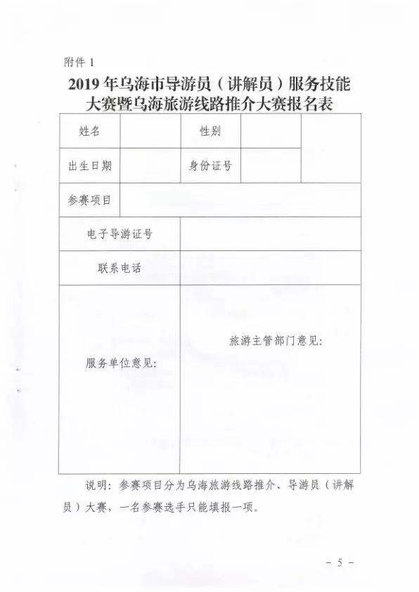 附件1:2019年乌海市导游员(讲解员)大赛暨乌海旅游线路推介大赛报名表