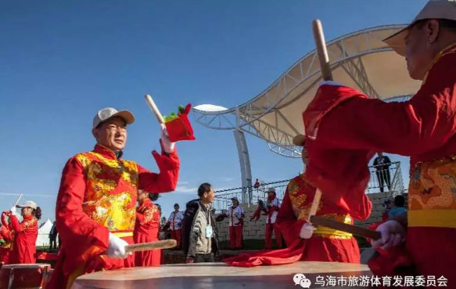 开幕式上蒙古族顶碗舞、筷子舞表演队,黄河风情威风锣鼓队,锣鼓喧天,载歌载舞,为比赛运动员鼓劲助威。