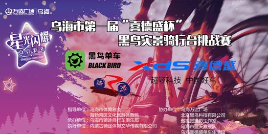 12月24日下午14:00,乌海市举办第一届“喜德盛杯”黑鸟实景骑行台挑战赛,本次挑战赛是为了全面贯彻《全民健身实施计划》和进一步开展乌海市自行车爱好者冬季体育健身运动,倡导“绿色环保、文明出行”的健康观念,同时展现乌海骑行爱好者坚持冬季骑行健身的风采。