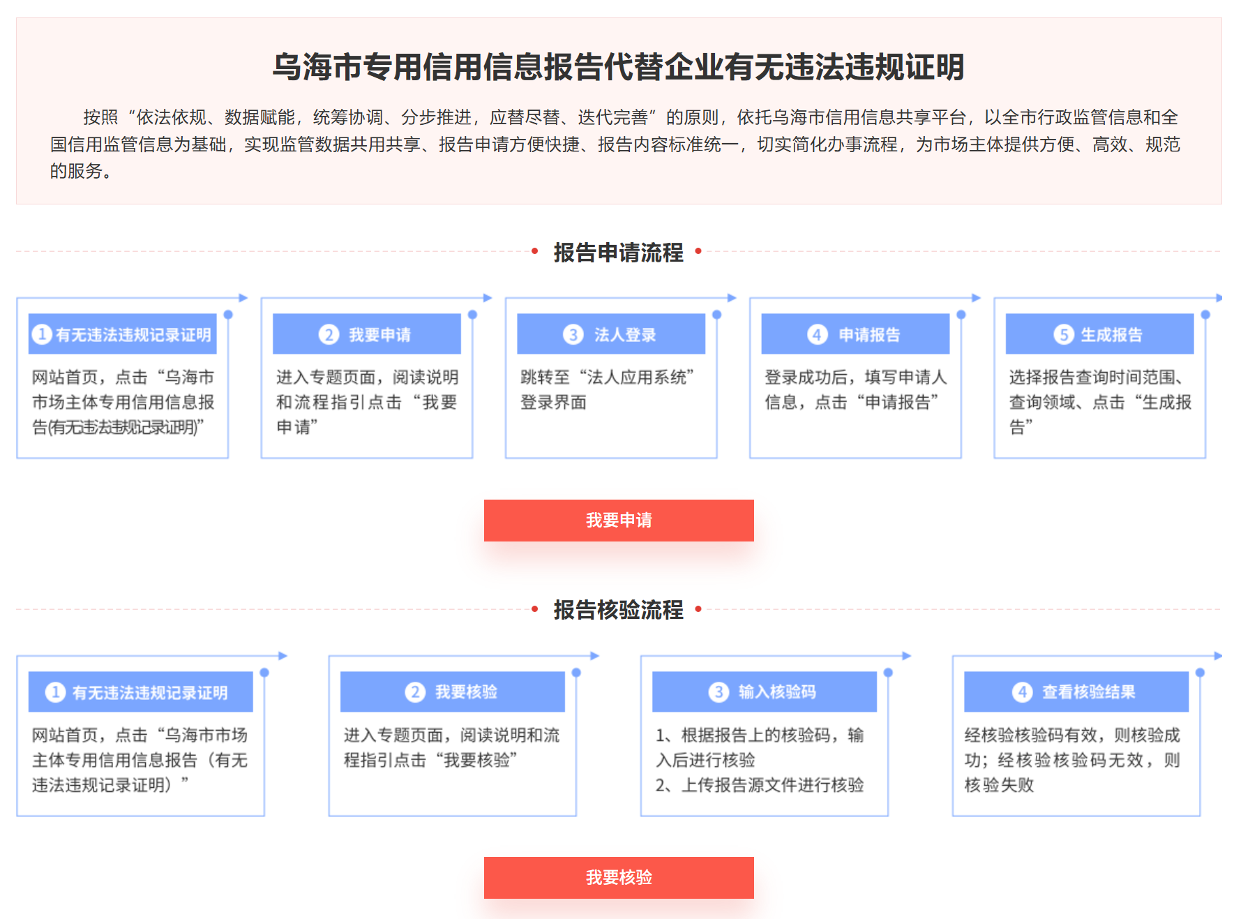 乌海市专用信用信息报告代替企业有无违法违规证明