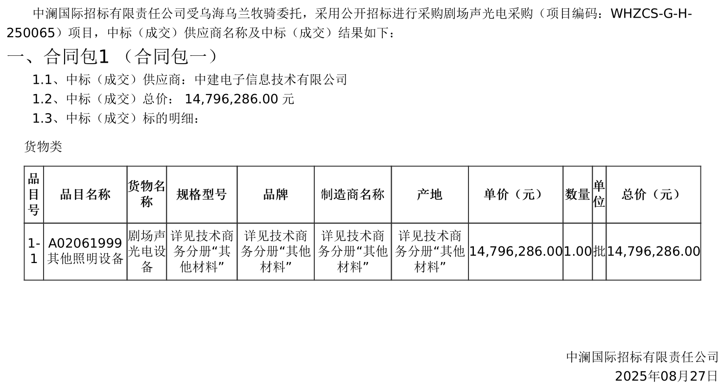 乌海乌兰牧骑剧场声光电采购中标(成交)明细