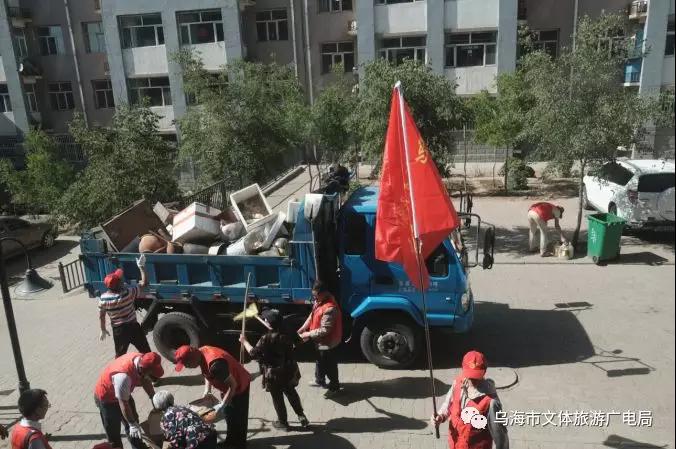 在“主题党日”集体活动结束后,市文体旅游广电局的党员和入党积极分子们在明日星城小区开展了“创建全国文明城市、国家卫生城市我们在行动”主题宣传活动,现场发放宣传单、宣传册、手提袋,进行创城创卫宣传,受到了小区居民的好评。在党员同志们的带领下,大家对明日星城小区乱堆乱放杂物的住户进行了劝导,清理乱堆乱放杂物300余件。